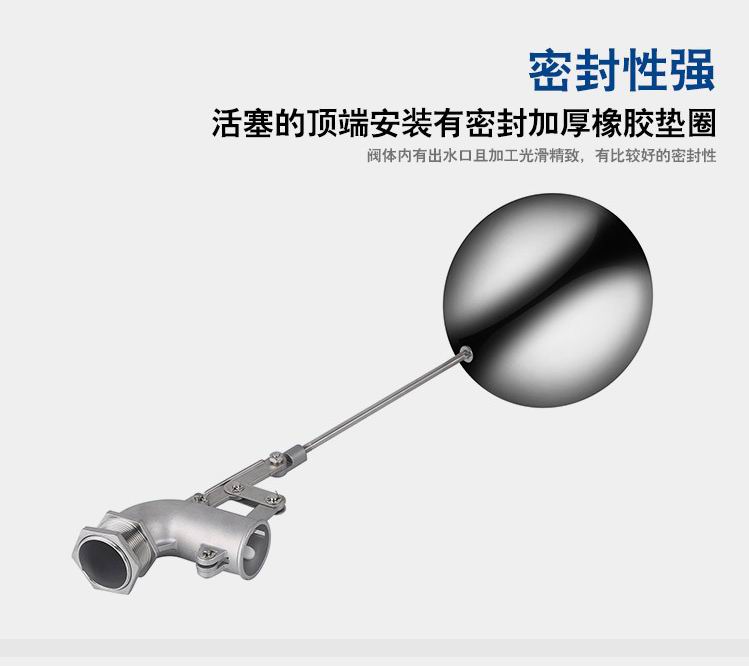 當(dāng)水塔內(nèi)水面下降時(shí),浮球下落,利用水管內(nèi)水的壓力,將閥體里的密封硅膠柱塞打開,閥體開啟供水,當(dāng)水塔水位上升時(shí),浮球上浮,連桿帶動柱塞,硅膠體密封進(jìn)水孔,閥體停止供水.